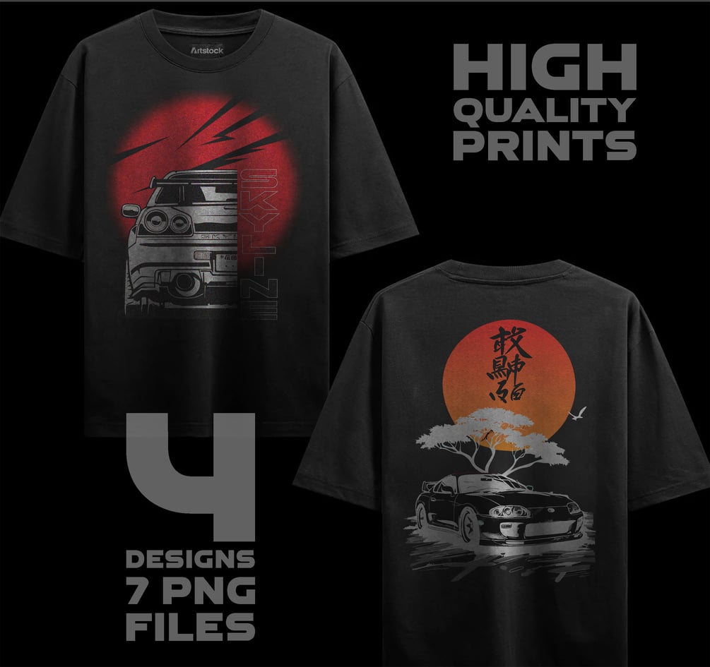 Printable Supercar T Shirt Design (4 PNG Files) | Sports Car Digital Download for Apparel